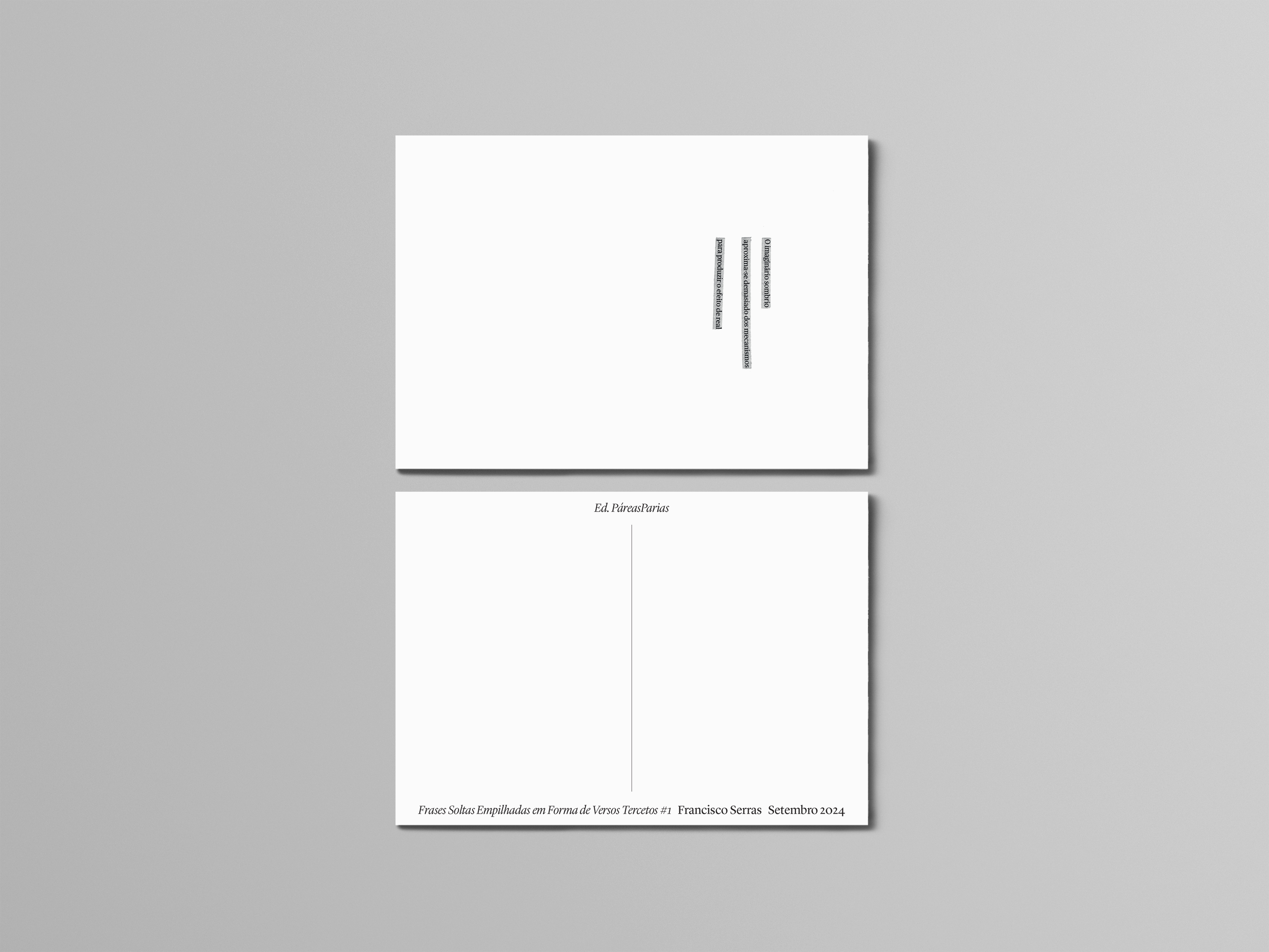 Postais A6 compostos pela autora, cabendo a impressão e acabamentos à